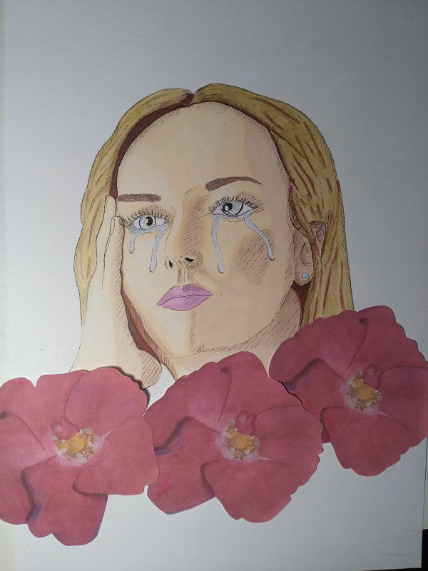 "Broken heart, bleeding tears."